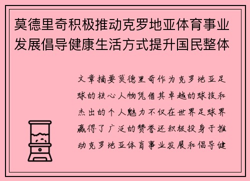 莫德里奇积极推动克罗地亚体育事业发展倡导健康生活方式提升国民整体健康水平